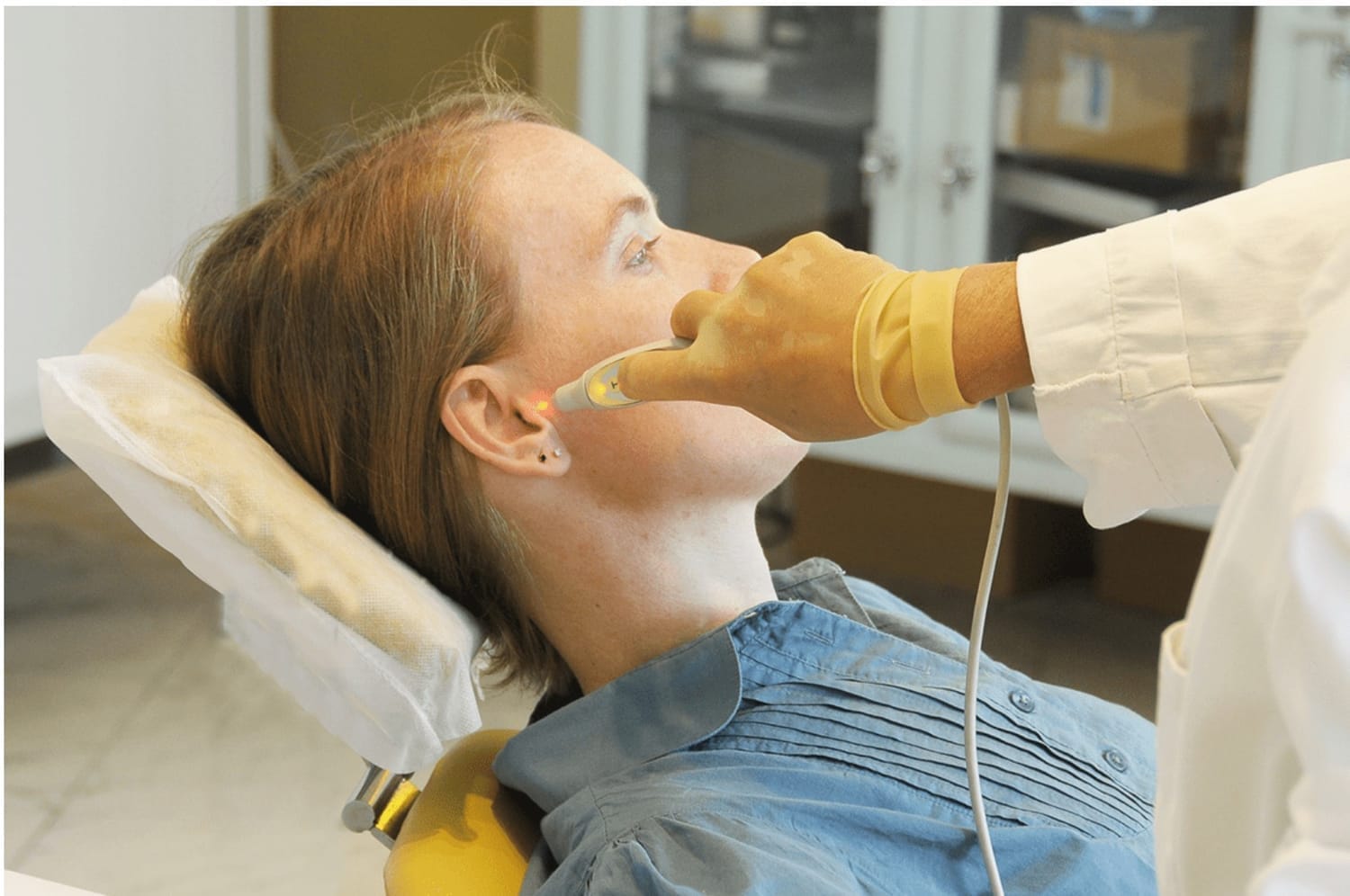 Avant d'appliquer le laser, le thérapeute utilise un détecteur pour identifier les zones à traiter.